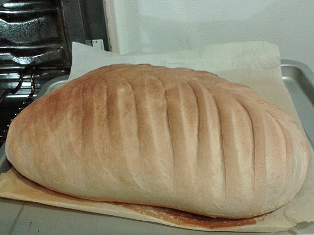 Poi preparo il panetto e lo metto a lievitare nel forno spento per tutta la notte. Alla mattina il pane risulta molto cresciuto e lo inforno a 220° per poi abbassare la temperatura a circa 200°. In totale, cuoce circa un’ora abbondante, poi lo lascio nel forno spento ed aperto per una mezz’oretta ed infine lo metto in una griglia a raffreddare.