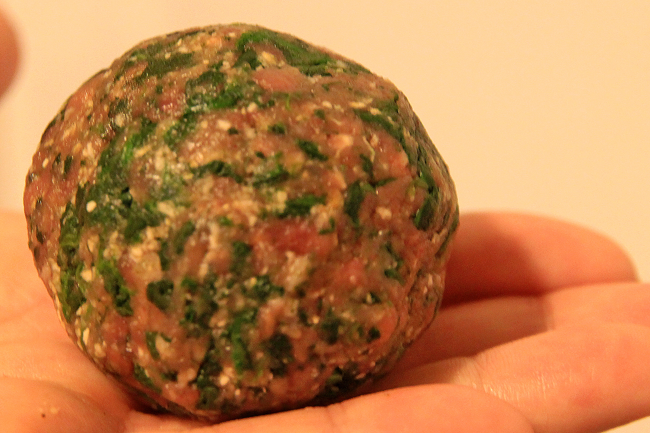 Polpetta "esperimento" con spinaci Polpette di spinaci