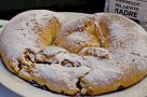 Si mette ad ammollare l’uvetta in acqua tiepida con i tre quarti dell’aroma rum. Si montano a neve soda gli albumi con lo zucchero. A parte si fa una pastella con gli altri ingredienti (tuorli, latte con il restante aroma rum, farina, sale, lievito). Si strizza e si asciuga bene l’uvetta, infarinandola bene per far sì che non precipiti nell’impasto. Si uniscono tutti gli elementi, mescolando delicatamente.