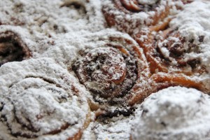 La domenica mattina inforniamo a 150 gradi e cuociamo per circa 40 minuti. Se ci piace, completiamo con una spolverata di zucchero a velo!